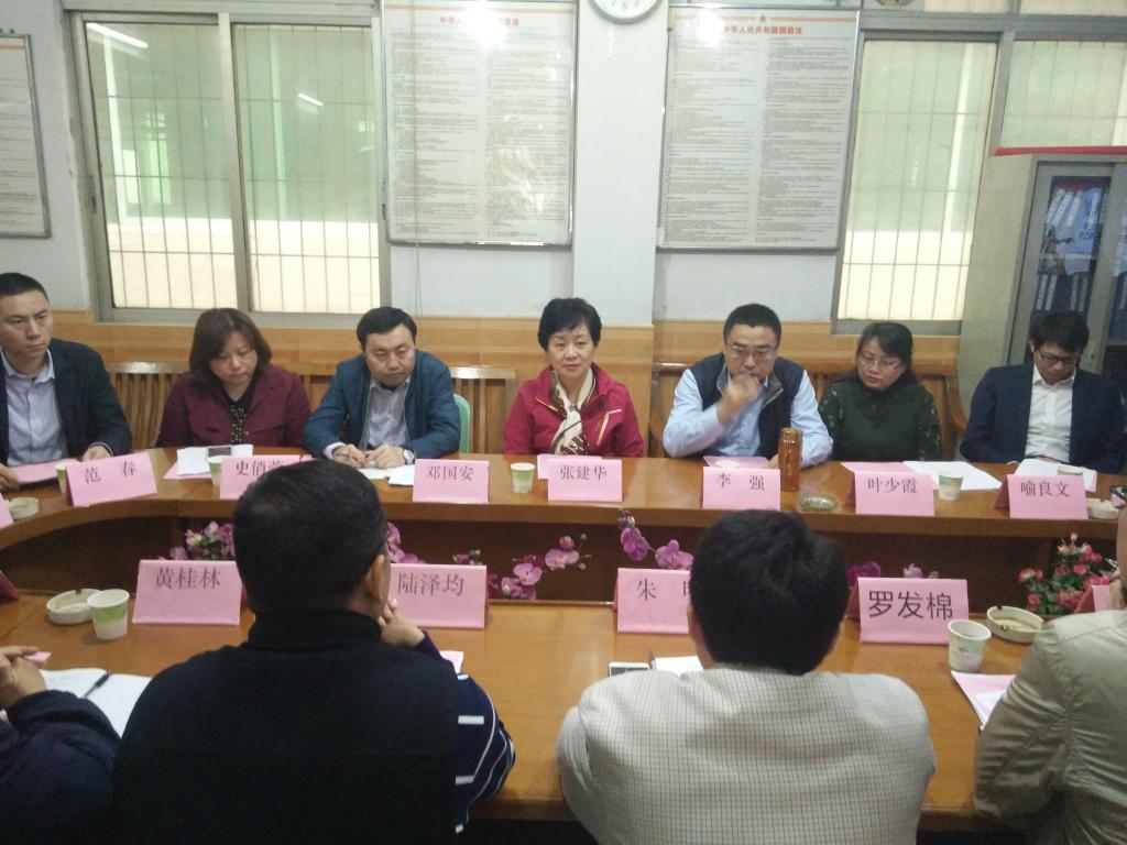 张建华与清新区政协副主席朱明、清新区扶贫办副主任罗发棉、太平镇党委书记陆泽均等当地领导就精准扶贫工作交换了意见。驻村干部郑永臻汇报了近期精准扶贫工作取得的成效及今后的工作设想。朱明、陆泽均等对张建华一行表示热烈欢迎,对学校的帮扶支持表示感谢,对我校两位驻村干部的工作给予了充分肯定。