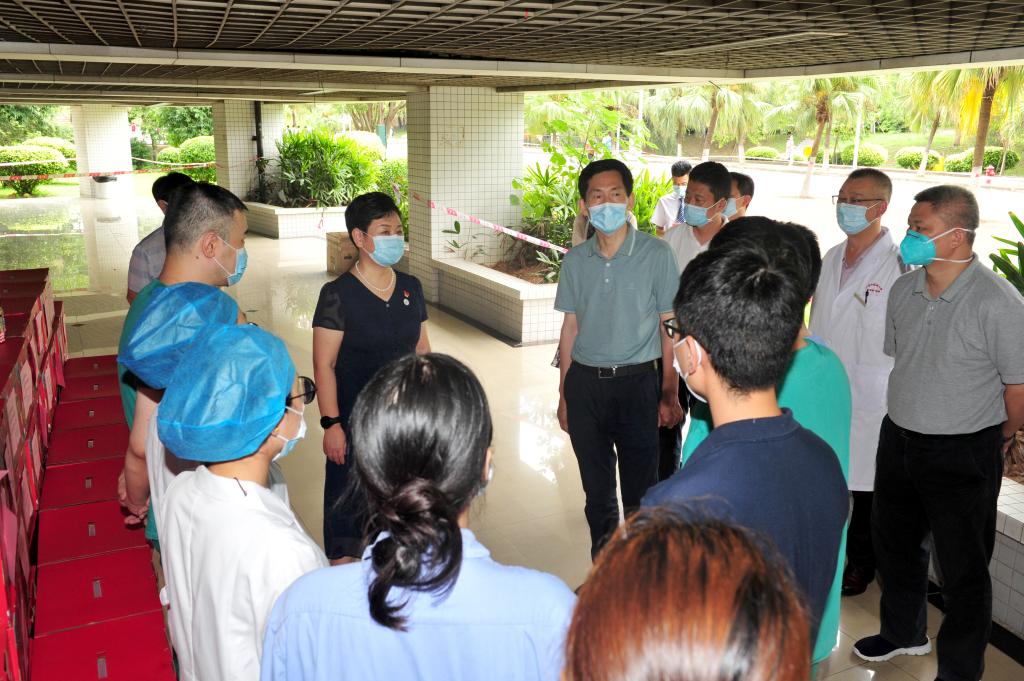 校领导一行向在场的医护人员和保安保洁人员致以亲切问候,对他们的密切配合和辛勤付出表示衷心感谢。书记、校长在详细地了解健康观察区师生的身心健康状况和医护后勤保障等工作情况后,要求有关单位部门要毫不放松地继续做好防控工作,鼓励大家要相信党中央和省市政府的正确领导,要认识到虽然广州这次疫情爆发比较突然,但省市政府反应迅速,措施得力,广州医疗资源充裕,处置疫情经验丰富,我们要有充分的信心取得这次抗疫胜利。