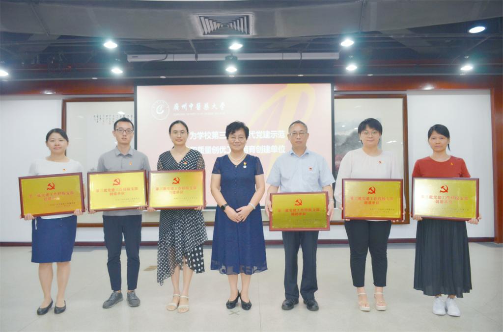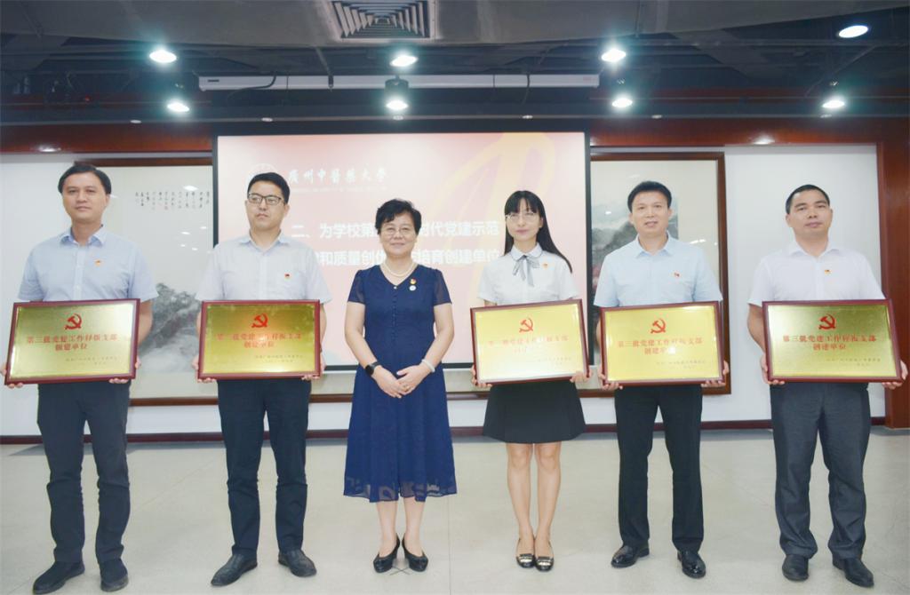 张建华为学校第三批新时代党建示范创建和质量创优工作培育创建单位和第二批“双带头人”教师党支部书记工作室培育创建单位授牌;党委宣传部、统战部部长郑维群同志介绍下半年党史学习教育工作重点和注意事项;党委组织部常务副部长叶熙熙介绍下一阶段组织工作重点内容。学校首批新时代党建示范创建和质量创优工作培育创建单位负责人进行了验收工作汇报。