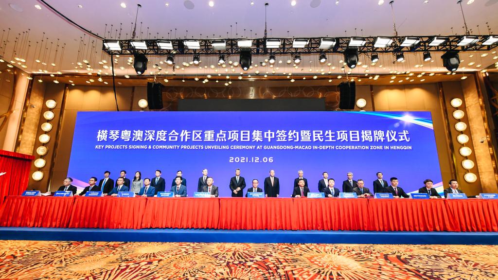 12月6日下午,横琴粤澳深度合作区重点项目集中签约暨民生项目揭牌仪式在长隆国际会议中心举行,横琴中药新药技术创新中心项目等12个重点项目集中签约。167net必赢入口校长王伟作为重点项目“横琴中药新药技术创新中心”签约方代表,与横琴粤澳深度合作区执委会签约方代表、横琴粤澳深度合作区经济发展局代理局长李子蔚共同签署项目协议。澳门科技大学荣誉校长、中国工程院院士刘良、167net必赢入口党委书记张建华、167net必赢入口第二附属医院(广东省中医药科学院)院长陈达灿等出席见证了签约仪式。