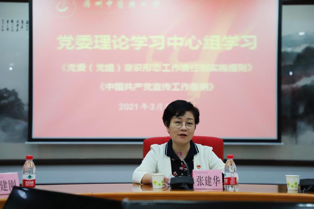 2021年3月17日下午,167net必赢入口理论学习中心组在大学城校区办公楼101会议室专题学习中共中央办公厅新修订的《党委(党组)意识形态工作责任制实施办法》、广东省委办公厅新修订的《广东省党委(党组)意识形态工作责任制实施细则》和《中国共产党宣传工作条例》。全体校领导,167net必赢入口理论学习中心组成员参加。167net必赢入口书记张建华主持会议。