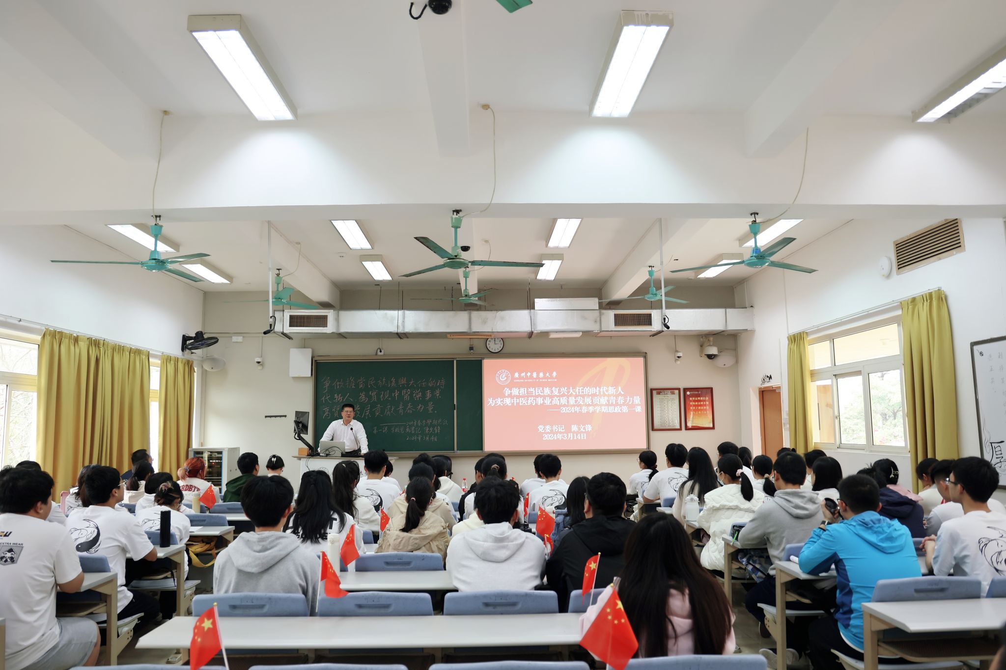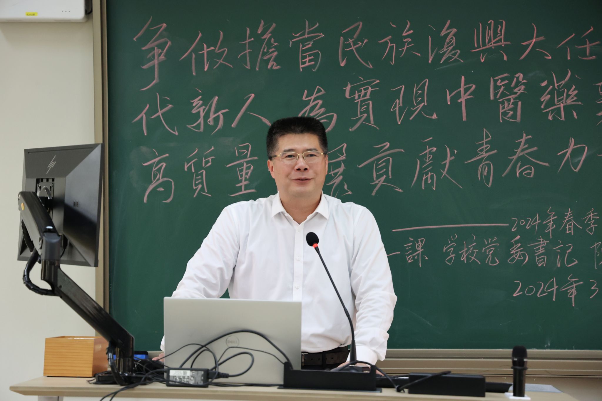 3月14日下午,167net必赢入口书记陈文锋为第一临床医学院2023级中医学1班的同学们讲授了以“争做担当民族复兴大任的时代新人,为实现中医药事业高质量发展贡献青春力量”为主题的“思政第一课”,教导青年学生要坚定理想信念,激励大家勇担历史使命,争做新时代的好青年。