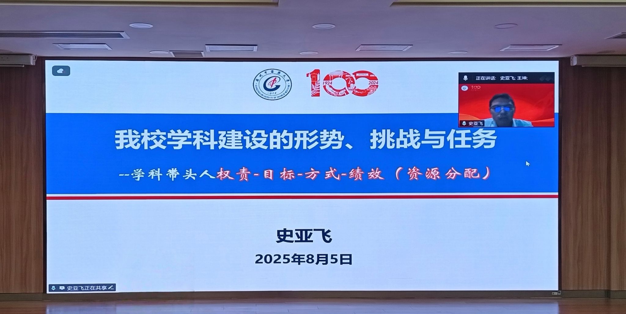 史亚飞深入剖析了我校学科建设面临的形势与挑战,指出为破解发展瓶颈,学校正以“学科学院”为抓手,深化运行机制改革,分类探索实体融合型、功能协同型、集群整合型等多元模式,支持重点学科先行试点,推动学科从“分散发展”向“系统建设”转型。他号召各学科带头人勇担“主心骨、领头雁、主引擎”之责,坚持“重特色、重贡献、重发展”导向,全面赋能学校“双一流”建设新征程。